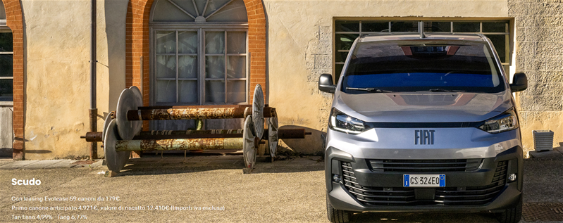 DETTAGLIO PROMOZIONE: Es. di leasing finanziario Evolease su SCUDO VAN L2H1 1.5 BlueHdi 120cv MT6: Prezzo di Listino 29.200 € (Messa su strada, IPT e contributo PFU esclusi), Prezzo Promo 22.350 €. Valore fornitura 22.350 €: Primo canone anticipato 4.921 €, durata 60 mesi; 59 canoni mensili da 179 € (incluse spese di gestione di 16,19 € /canone ed il servizio Identicar 12 mesi per un importo mensile del servizio 3,7 € /canone, Messa su strada e contributo PFU esclusi). Valore di riscatto 12.410 €. Importo Totale del Credito 17.984,37 € Spese Istruttoria 0€. Bollo 16 €. Spese invio rendiconto periodico cartaceo: 0 €/anno. Interessi Totali 3.813,12€. Importo Totale Dovuto 26.163,12€ (escluso anticipo e comprensivo dell'eventuale Valore di Riscatto). Solo in caso di restituzione e/o sostituzione del veicolo alla scadenza contrattualmente prevista, verrà addebitato un costo pari a 0,05 €/km ove il veicolo abbia superato il chilometraggio massimo di 100.000 km. TAN (fisso) 4,99%, TAEG 6,77%. Tutti gli importi sono indicati al netto di IVA (ove prevista). Offerta riservata ai titolari di Partita IVA in caso di permuta o rottamazione usato per contratti stipulati entro il 31 ottobre 2025, non cumulabile con altre iniziative in corso. Offerta Stellantis Financial Services Italia S.p.A. soggetta ad approvazione. Documentazione precontrattuale bancaria/assicurativa in concessionaria e sul sito www.stellantis-financial-services.it (Sez. Trasparenza). Messaggio Pubblicitario con finalità promozionale
